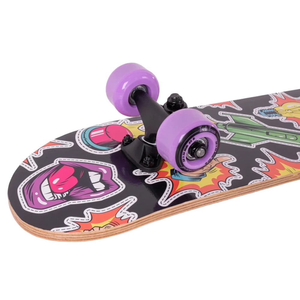 Скейтборд Tech Team Profi 2024 фиолетовый - это смесь классического стиля и современных технологий. Колеса из полиуретана размером 50x36 мм с жесткостью 85А обеспечивают стабильность и динамичность в движении. Дека, выполненная из 9 слоев высококачественного китайского клена, с размерами 24”х6”, обеспечивает уверенность в каждом движении. Черная шкурка 80AB на верхней части деки гарантирует отличное сцепление с ногой, а нижняя часть, украшенная ярким принтом в фиолетовых тонах, воплощает в себе дух свободы и бунтарства. Подшипники ABEC 5 обеспечивают плавное и быстрое движение. Двойной концевой загиб деки (Double Kick) позволяет легко выполнять сложные трюки. Этот скейтборд - ваш верный спутник в городских приключениях.