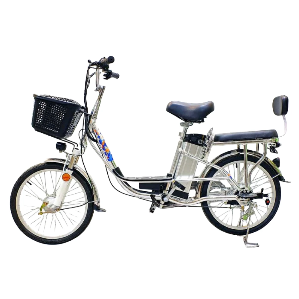 Комфорт и практичность техники обеспечены вместительной передней корзиной, удобной для посещения магазина. Электровелосипед оснащен водительским и пассажирским сиденьем со спинкой. Оба мягкие и удобные, повторяют анатомические части тела, не допускают усталости при передвижении на дальние расстояния.