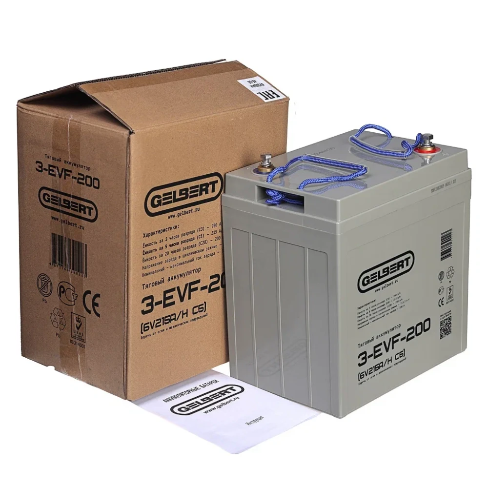 Тяговый аккумулятор Rutrike Gelbert 3-EVF-200 (6V215A/H C5) – это современное и надежное решение для грузовых трициклов и складской техники. С напряжением 6 В и ёмкостью 215 А·ч по схеме С5, данный аккумулятор гарантирует длительный срок службы и стабильное питание даже при интенсивном циклическом использовании. Его компактные размеры – 260 мм в длину, 180 мм в ширину и 285 мм в высоту, а также вес 35 кг позволяют легко интегрировать его в конструкцию различной техники. Продукт, входящий в серию EVF, отличается высокой эффективностью, надежной конструкцией и продуманной эргономикой, что делает его оптимальным выбором для профессионалов, ценящих качество и долговечность. Rutrike Gelbert 3-EVF-200 успешно справляется с задачами по тяговому питанию, обеспечивая бесперебойную работу оборудования в самых суровых условиях эксплуатации, будь то транспортировка грузов или работа в условиях склада. Благодаря инновационным технологиям производства и строгому контролюRutrike  качества, этот аккумулятор заслуживает доверия и является надежной опорой для любой техники, требующей стабильного и мощного источника энергии.